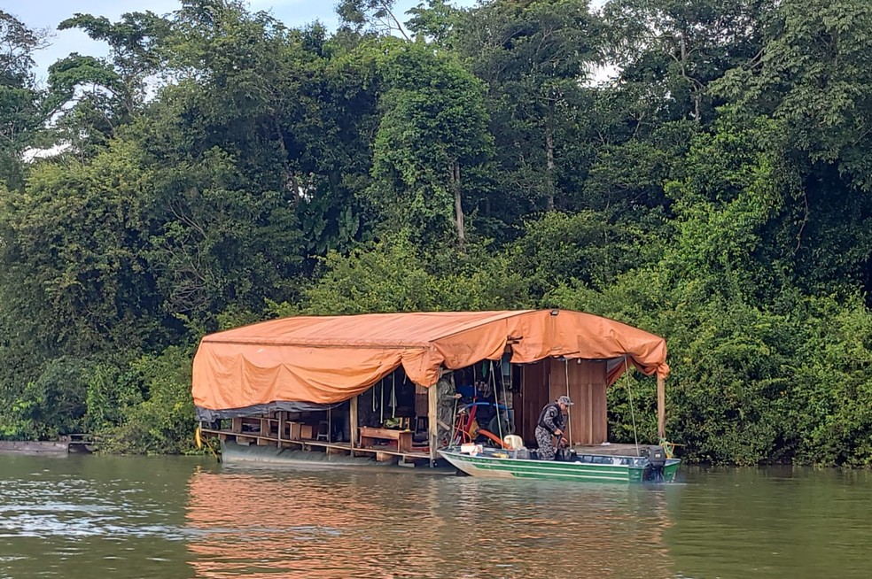Embarcação apresentava vestígios de atividade garimpeira. — Foto: BPMPA